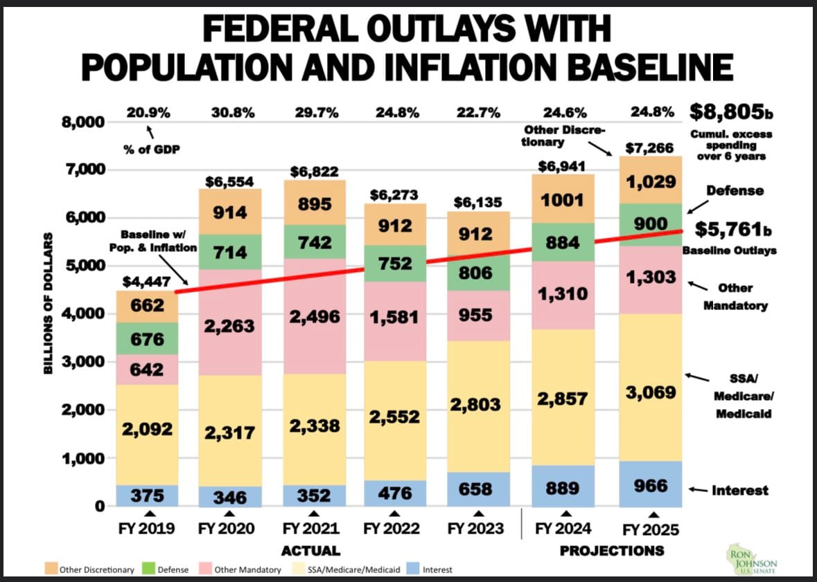 So it’s midnight, and the writing is on the wall of the empire. Even with explosive GDP growth, cutting government, now or later, is unavoidable. As painful as the remedy may be, the prognosis is horrible. Now cue DOGE…