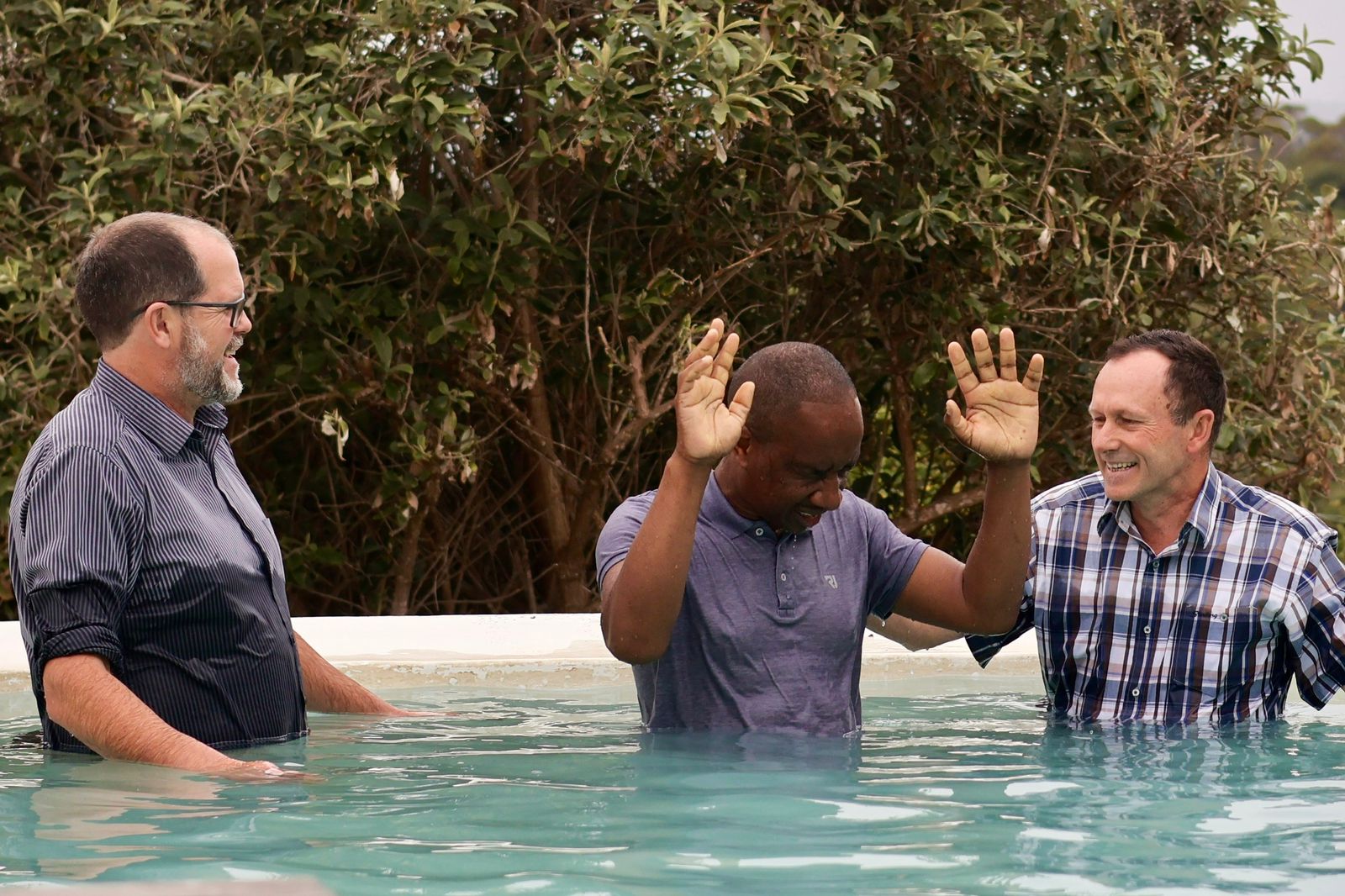 “This weekend Freddie and Charlotte Bieldt and Jesse van der Walt were baptized. Jesse’s parents, Michael and Christina, were baptized last year.